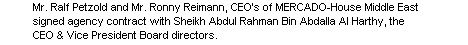 MERCADO-House Middle East agree an agency partnership with the well-known company located in Oman.