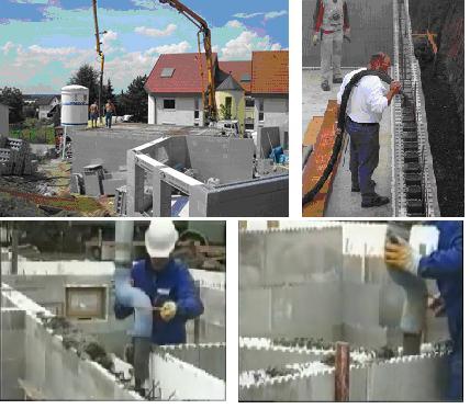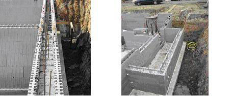 Setting of walls start with plug the first three rows together. In doorways, insert the first row together as a distance piece. Subsequently push the wall exactly into the position previously marked on the floor slab.